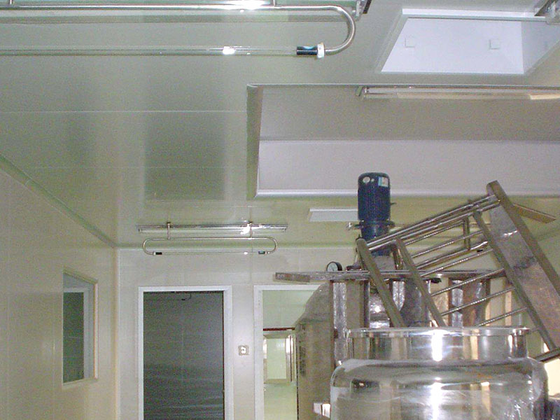 凈化廠房噴頭必須選用上自噴,即灑水噴頭制裝在裝修吊頂隔層內(nèi),生產(chǎn)車間內(nèi)安裝煙感探測器、消防栓、排煙系統(tǒng)出風口,這類方式占多數(shù)。灑水噴頭立即明裝在生產(chǎn)車間內(nèi),凸起裝修吊頂,不密封性易積塵。灑水噴頭裝在裝飾設(shè)計套筒規(guī)格內(nèi)和裝修吊頂相平,套筒規(guī)格有專用型的密封,密封性好,套筒規(guī)格高寬比難以一致,外型感略差。